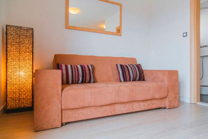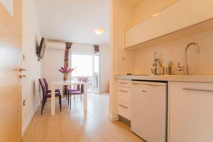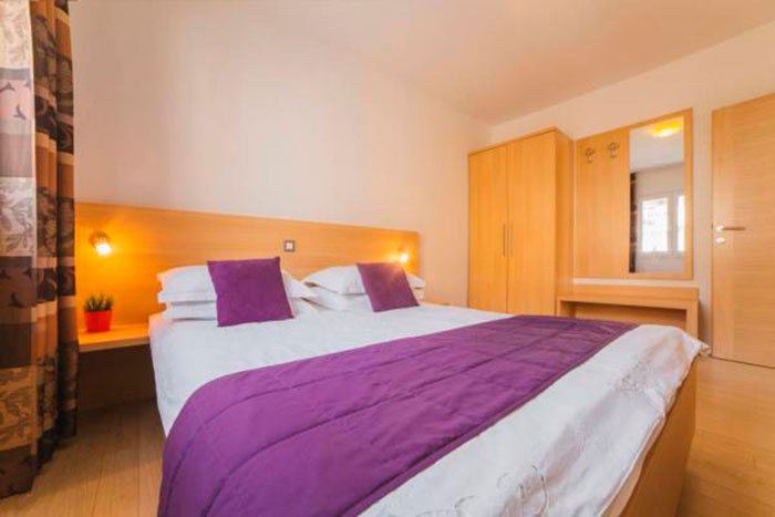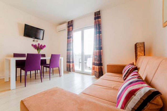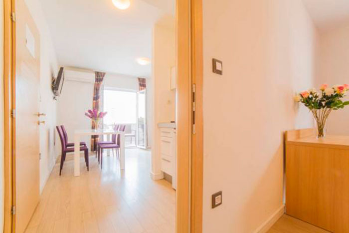 Апартаменты 2+2. Площадь 28 кв.м., максимальное размещение 4 человека. Отдельная спальная комната, отделенная дверью от гостиной, балкон с видом на море, ванная комната с душем, кухня, кондиционер, электрический чайник.