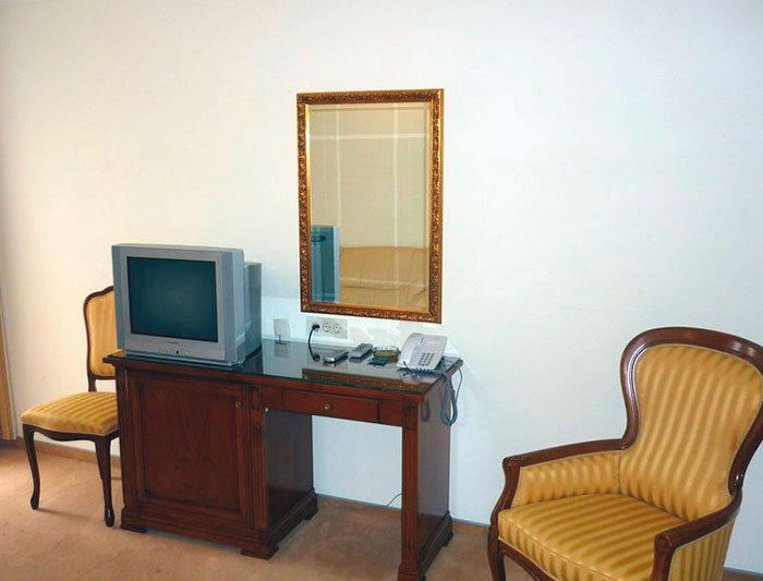 Комплекс отеля полностью отреставрирован в 2005г. и состоит из центрального здания,четырех трехэтажных и одного двухэтажного корпусов ,расположившихся в сосновом бору прямо на берегу моря. Комплекс предлагает Вам 130 комфортных номеров ,большинство которых с прекрасным видом на море,балконом или террасой ( в центральном корпусе нет балконов). Элегантные и климатизированные номера оборудованны ванной (душевой) комнатой с феном,телефоном , TV. Комплекс имеет мелкогалечный пляж , ресторан на 250 мест с террасой и прекрасным видом на море, аперитив-бар, пицерию-гриль ( a la card), ресторан с музыкой и танцевальными вечерами, открытый бассейн, TV салон с WI-FI зоной, теннисный корт.