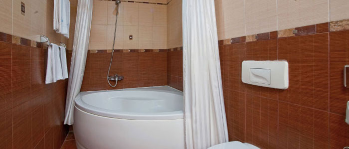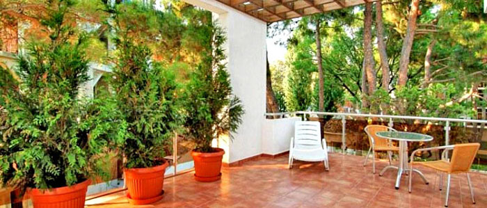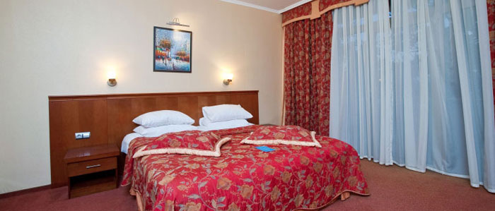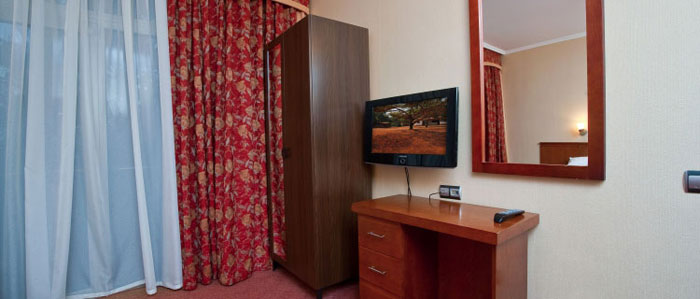 Номер площадью 46 кв.м. состоит из двух комнат - спальни с большой кроватью и гостиной. В номере - индивидуальная система кондиционирования; телевизор; телефон; два санузла - один гостевой с душевой кабиной, второй для проживающих с большой угловой ванной; выход на террасу или балкон.