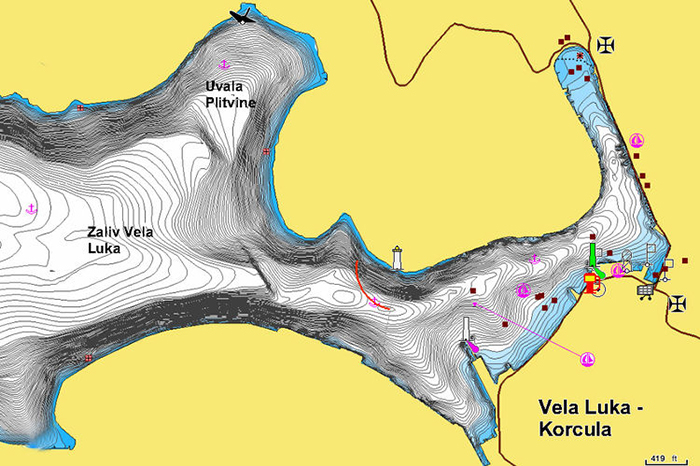 Муниципальная яхтенная марина Вела Лука находится в глубине залива Вела Лука и имеет 40 стояночных мест для яхт до 17 м длинной. Цена стоянки - 1,64 евро за метр длинны яхты за сутки.